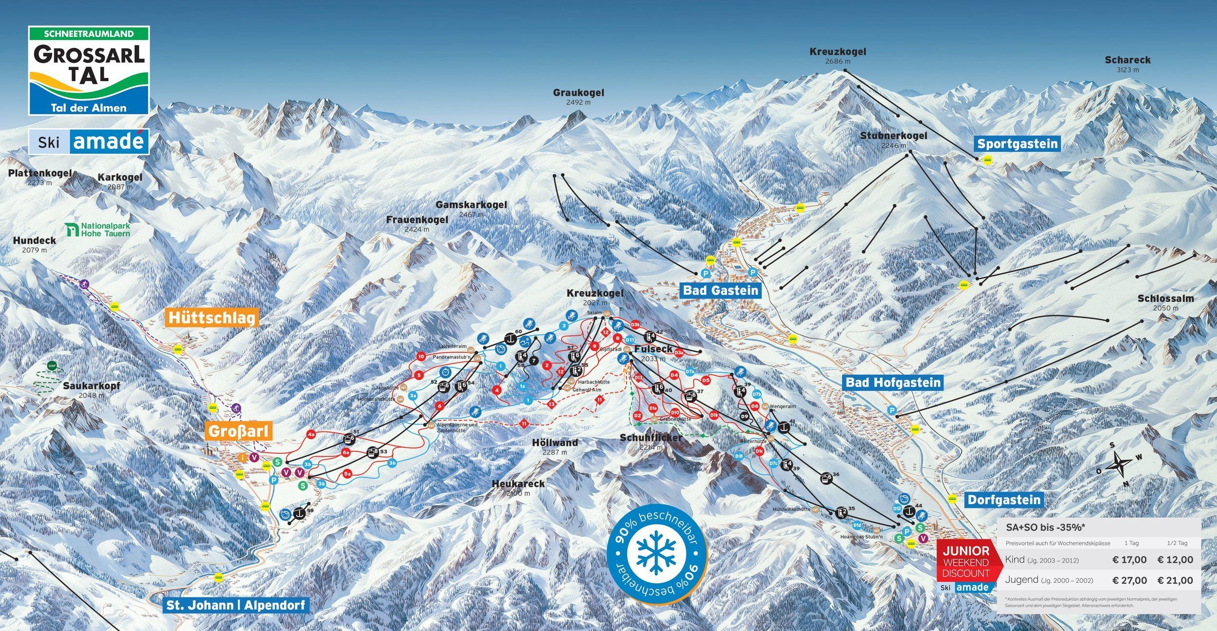 U zoekt informatie over de actuele sneeuwcondities? Hier vindt u de actuele weersvoorspelling van de komende dagen in Großarl. Normaal gesproken kunt u ook een nog betere indruk krijgen via de webcam. Daarnaast kunt u de geopende skiliften in Großarl zien en de actuele sneeuwhoogtes op de berg en in het dal. Het diagram vergelijkt de sneeuwverhoudingen met die van vorig jaar en ook met die van het gehele seizoen in Großarl.